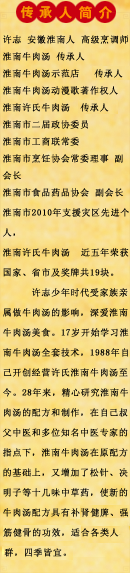 據傳淮南牛肉湯源自《五代十國公元957-960年間趙匡胤兵困南塘》距今已有1056年歷史。當年趙匡胤據兵淮南八公山南塘地,攻打壽春(今安徽壽縣),壽春守將劉仁瞻軍紀嚴明,守城如命,盡管趙部頑強作戰,仍屢攻不下。久之,外無救兵,內無糧草,趙匡胤反被兵困南塘。淮南地方老百姓看在眼里,急在心里,最后把自家耕牛紛紛宰殺掉,煮成大鍋湯,送進趙營,官兵喝后士氣大振,一鼓作氣攻破壽春城。公元959年,陳橋兵變,趙匡胤登基,始終忘不了淮南牛肉湯,后來在民間把淮南牛肉湯傳為“神湯”,又傳為“救駕湯”。